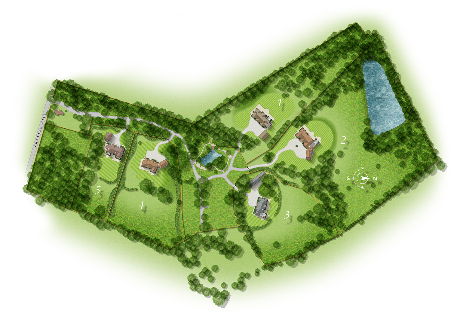 Nestled between the quintessential Surrey villages of Tilford and Elstead amidst the verdant landscapes of the Surrey Hills, this private estate is home to five exquisite properties, each set on its own secluded plot, offering unparalleled privacy and tranquillity.